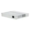 O switch possui 8 portas Gigabit Ethernet (10/100/1000 Mbps) para conexão de computadores, impressoras, câmeras IP e outros dispositivos, além de 2 portas SFP de 1 Gbps e 2 portas RJ-45 de 1 Gbps para uplinks, permitindo flexibilidade na interconexão com outros switches ou com a rede principal. Ele realiza telecomunicação digital via Ethernet, transmitindo dados em pacotes digitais dentro de uma rede local (LAN) e suportando protocolos padrão IEEE 802.3.